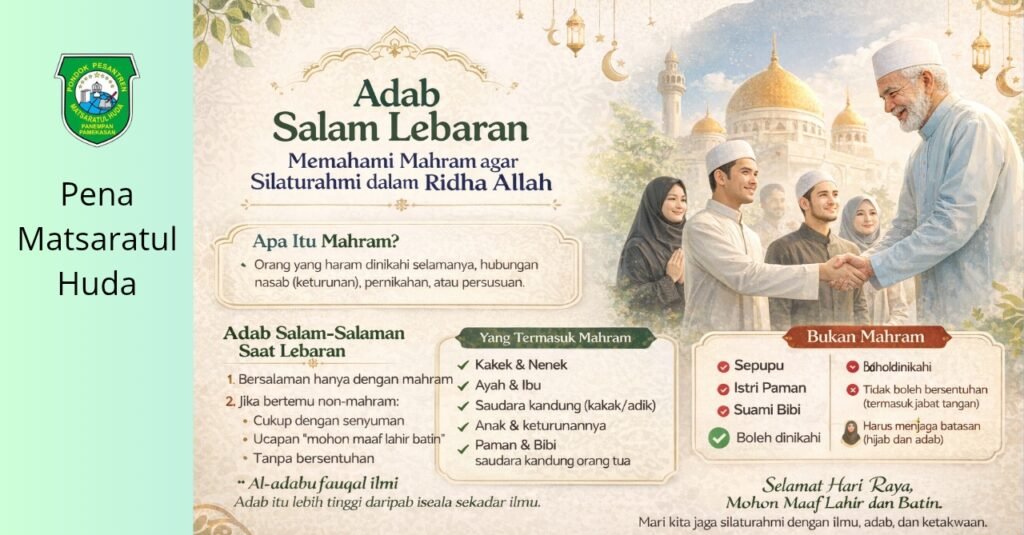 Dalam suasana hari raya yang penuh kebahagiaan, tradisi saling bersalaman menjadi salah satu wujud kasih sayang dan penguat tali silaturahmi. Namun, wahai kaum muslimin yang dirahmati Allah, ada satu perkara penting yang tidak boleh kita lupakan, yaitu memahami siapa saja yang termasuk mahram dan siapa yang bukan.